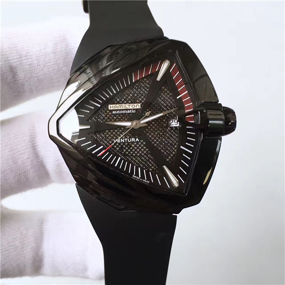 1比1 漢米爾頓探險家機械表,Hamilton VENTURA H24615331 瑞士機械機心,黑色PVD不銹鋼鍍層,不掉色,三角形特色男神個性手表。