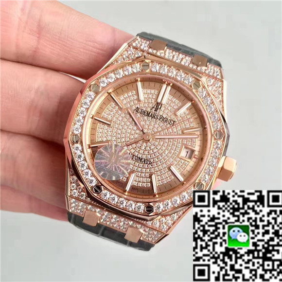 JF精品 高仿AP愛彼 滿天星 超A 愛彼18k玫瑰金鑲鉆女手表 正品壹比壹開模,愛彼皇家橡樹系列15402OR.ZZ.D003CR.01腕表 釆用3120機芯。